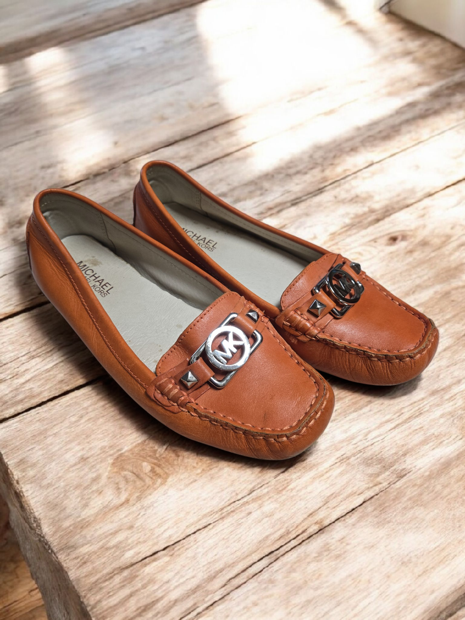 Features a loafer silhouette with visible stitching around the toe. Has a beautiful silver tone hardware with very minimal scratches. Some staining on the insole and a few wear sign on the outer sole but overall still in good condition. Leather is not heavily creased and no visible stain or rips.